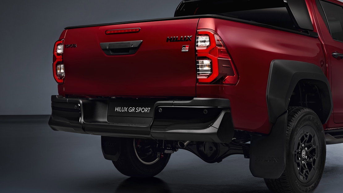 De Hilux GR SPORT II is voorzien van een zwarte grille met G-gaas met het klassieke Toyota-logo, zwarte treeplanken, spiegels en deurgrepen. De zilverkleurige beschermplaat voor de voorbumper, de zwarte achterbumper en de GR SPORT logo’s maken het stoere uiterlijk compleet.